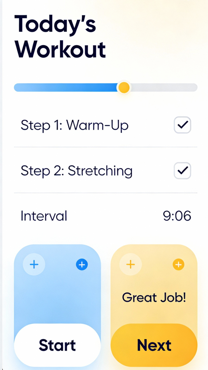 - 5–15 minute ADHD-friendly micro workouts based on your energy, mood, and time.